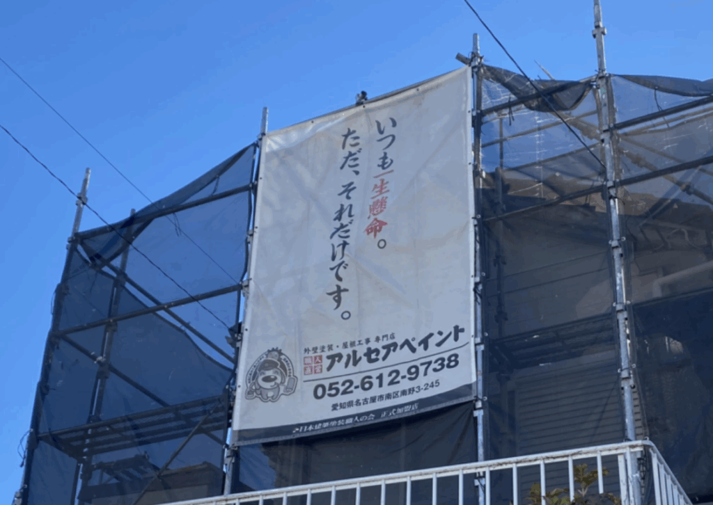 | ※一般の方が足場に登ってしまうと転落などの危険も伴いますので、施工期間中でも足場に登ったりしないでくださいね。また、子供さんたちが遊んで怪我をされたりすることにも気をつけてくださいね。 |